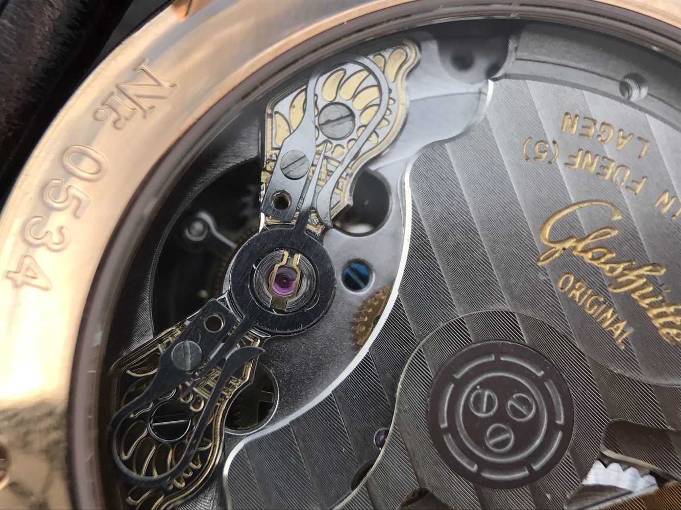 格拉蘇蒂原創參議員繫列94-11-01-01-04真陀飛輪腕錶,首款全自動機械真陀飛輪手錶,搭載定制原裝字面和底蓋機芯甲闆,擺幅21600.尺寸40×12.5mm,手繪陶瓷錶盤,淬火燒鋼藍錶針,藍寶石水晶鍍藍膜玻璃,原裝摺疊錶扣,進口意大利牛皮,做工演繹精髓復刻,18k包金,的品牌的做工!