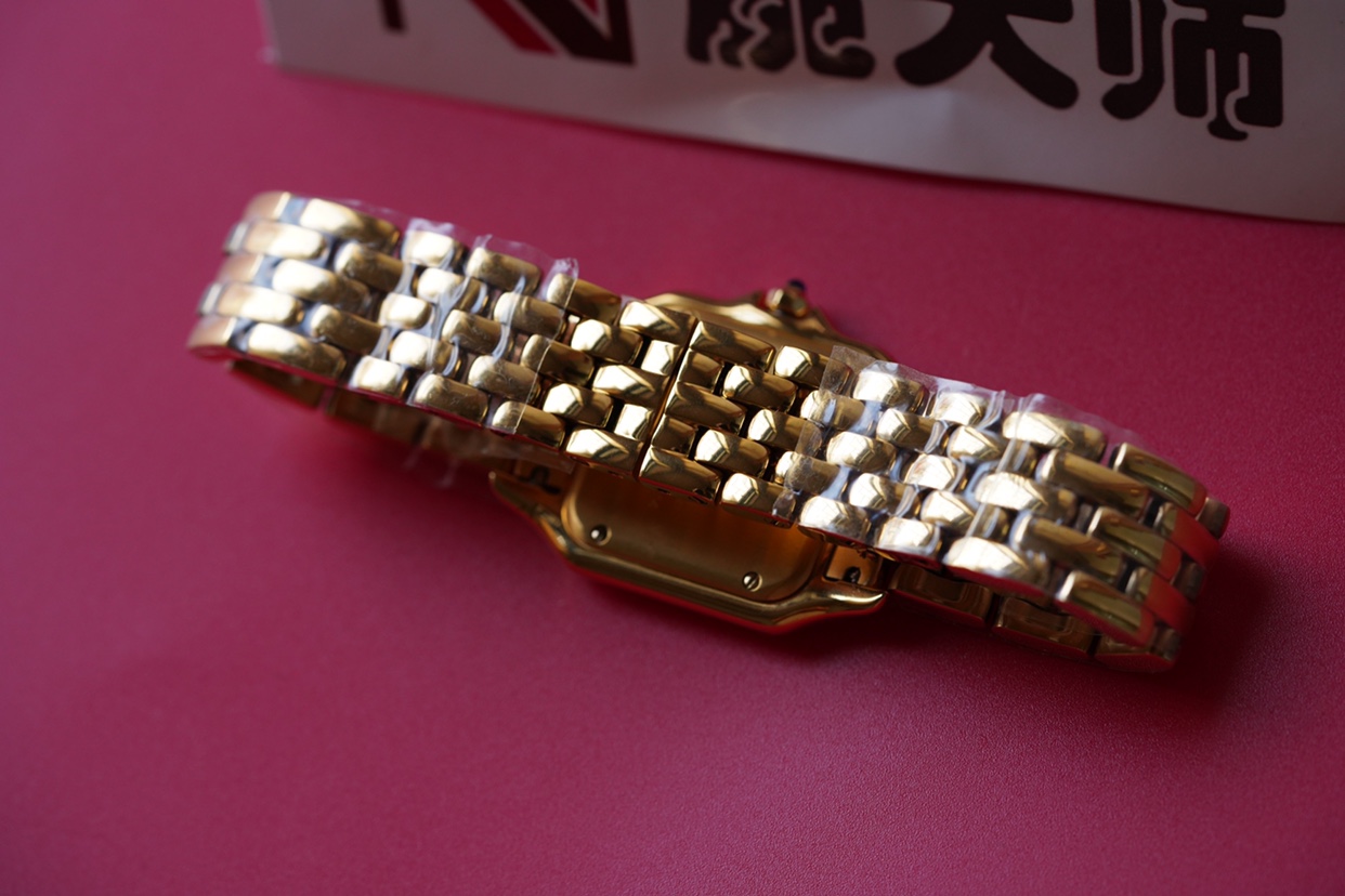 最強女錶繫列卡地亞獵豹Panthère de Cartier。 華麗而不羈,是Panthère de Cartier獵豹所傳達的美學風格。它線條流暢,魅惑動人,柔軟服帖於腕間,宛若在肌膚上翩翩起舞。獨特的造型彰顯成熟優雅、自信動人的女性形象。 以精湛技藝,原裝開模,打造出與正品無異的精美流線錶耳,與錶殼一體成型。搭載瑞士朗達石英機芯,316L精鋼殼套,尺寸:27 x 37毫米,厚度:6毫米,錶冠鑲嵌一顆合成藍色尖晶石,鍍銀錶盤,劍形藍鋼指針,100%三度防水。搭配專櫃旅行包裝物料。