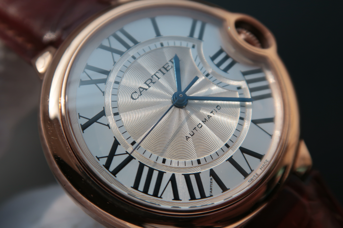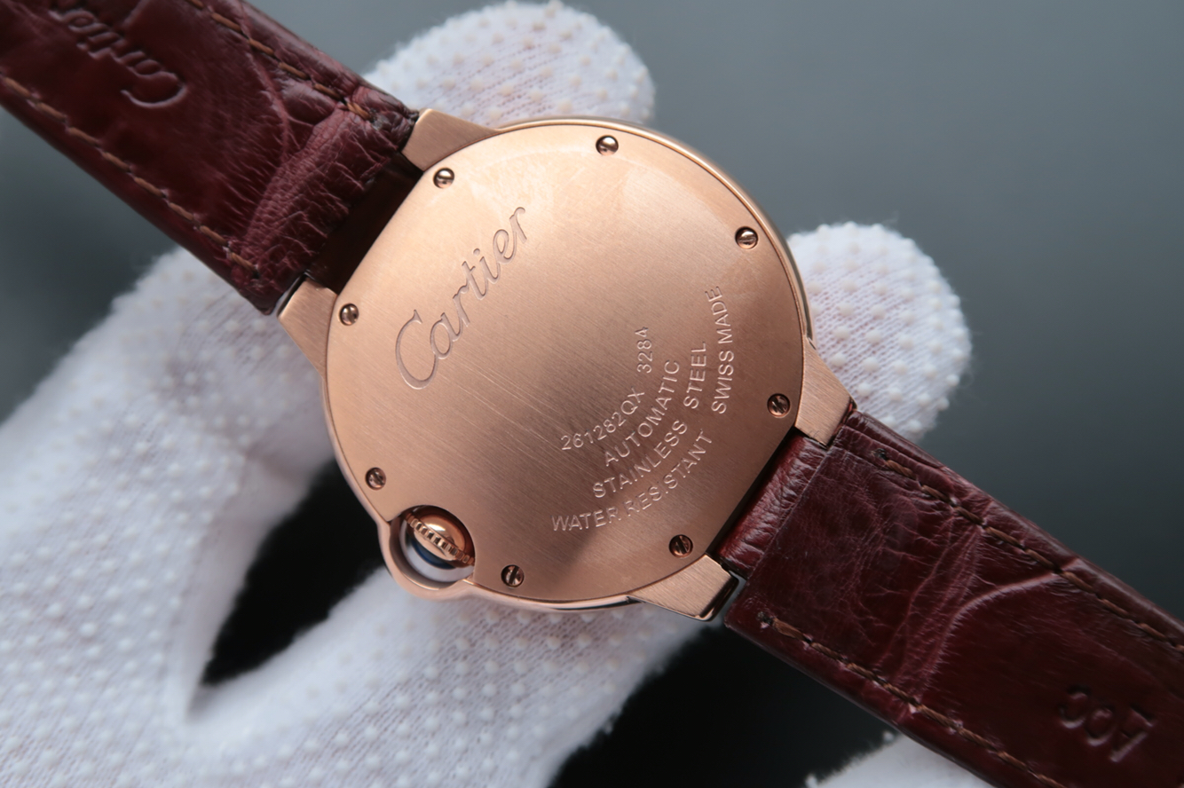 卡地亞藍氣球繫列W6900456(專櫃36mm藍氣球的頂配型號)。把頭和正品一樣大的藍寶石,錶殼包18k玫瑰金(11微米厚),永不掉色,正反澳洲鱷魚皮錶帶。真瑞士ETA2688改原裝076全自動機械機芯,同正品的米白色字面,魚眼狀抗刮花藍寶石鏡面,淬火藍鋼指針,標准36.6mm直徑,配件可與正品互換。具體評測如下: