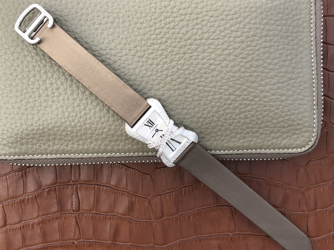 卡地亞CARTIER LIBRE繫列WJ306014腕錶,A在此弧度與圓形的設計是焦點,是極為珍貴華麗的手錶繫列,不對稱與獨特的錶圈極具特色,展現卡地亞令人驚喜的創思。錶圈鑲嵌天然水鉆,藍寶石玻璃,錶盤羅馬刻度,時,分顯示。高檔沙丁佈帶,摺疊式錶扣,嵌入式按的(在底蓋),瑞士原裝石英機芯,尺寸:38.7*26*11mm,防水深度:50M